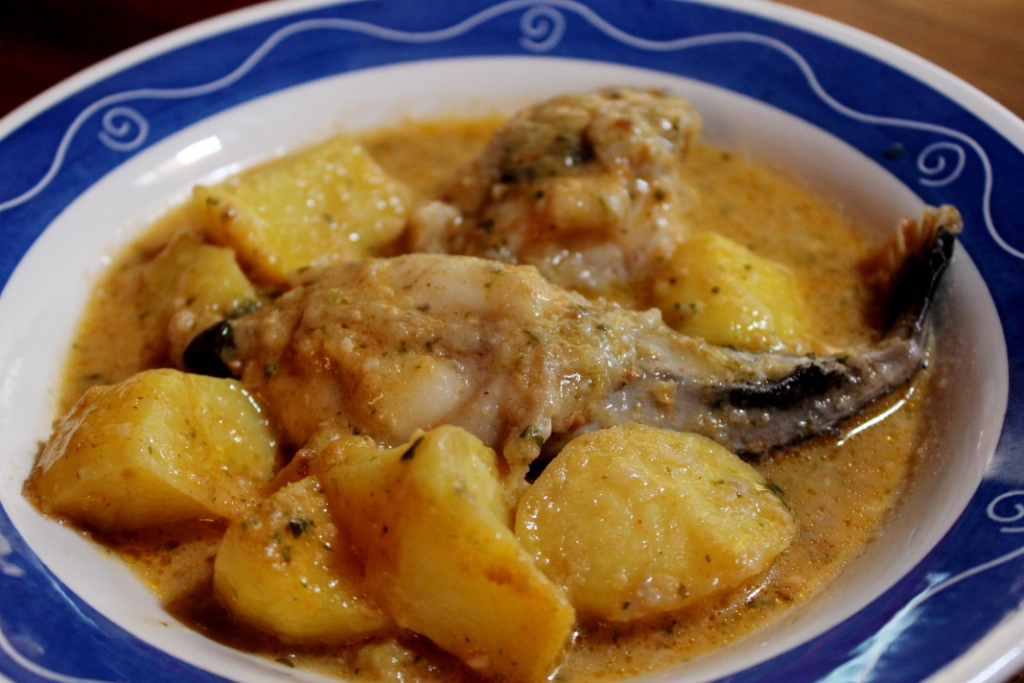 I normally don’t fry the potatoes, and cut the fish into small pieces similar in size to potatoes, never use almonds…I’ll try your way next time.