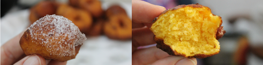 This recipe made about 90 little doughnuts, which sounds like a barbaric amount, but isn’t, especially when served to a table full of Valencians. Short work was made of these little blobs of pumpkiny, sugary sweetness on Easter Monday.