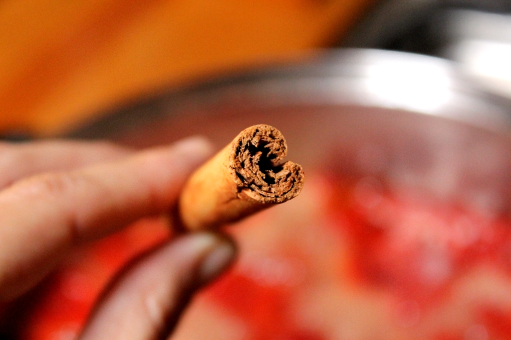 red yumminess. The cinnamon and lemon are optional. Iaia leaves her cinnamon in and pots shards of it up with the jam, but I hate finding little barky bits on my toast or between my teeth, so I pull it out at the last minute. The lemon gives you a lovely tangy surprise from time to time, and I really recommend including it!